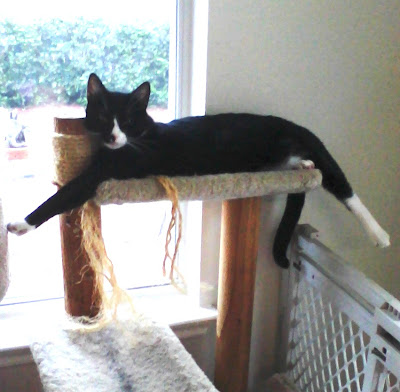 Poor Stamp had to cuddle with the post on the nearby cat tree |