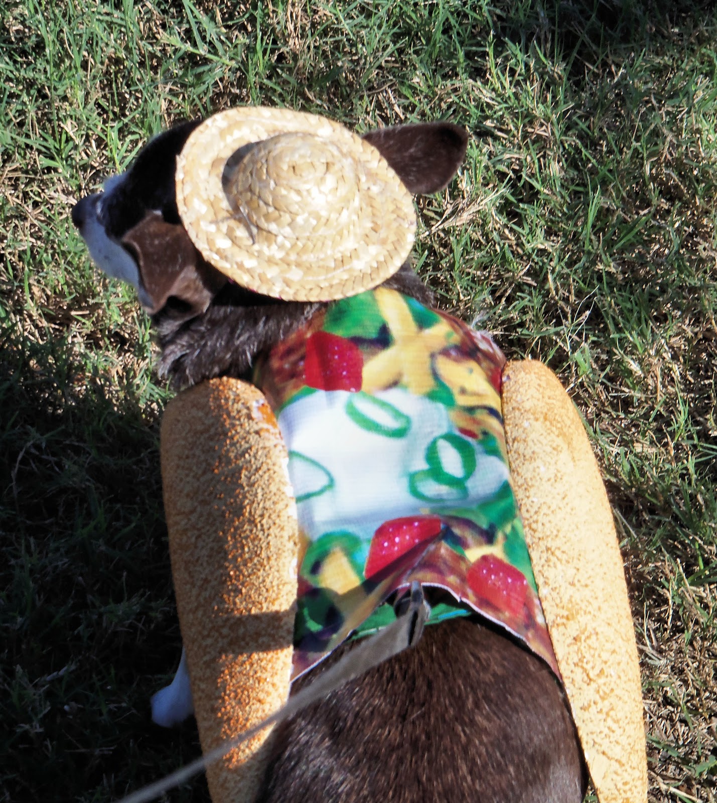 Tater was a convincing stegosaur, but she kept tripping on the legs which were just too long for her short little weenie dog legs.